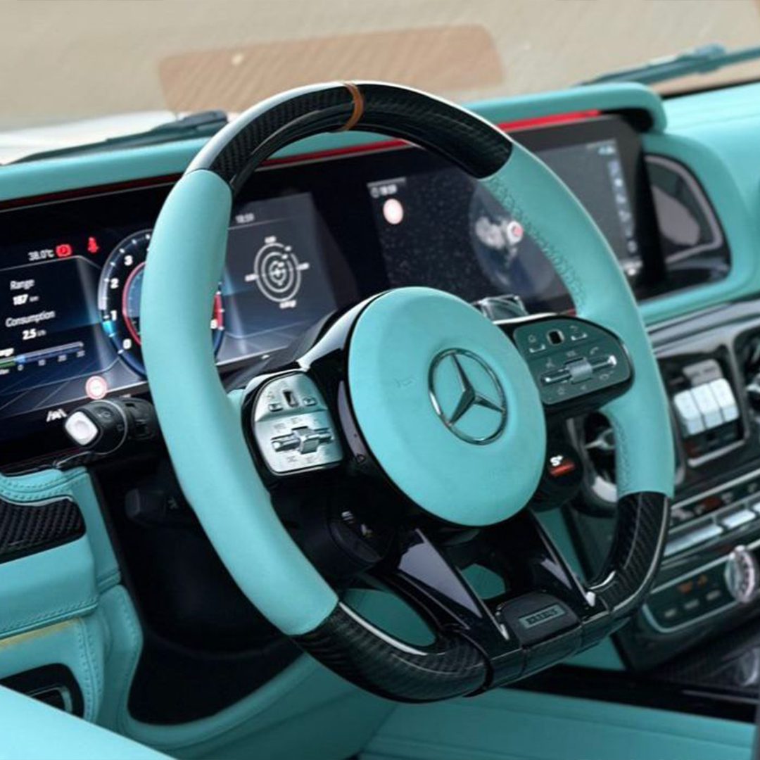 The 2024 Mercedes-Benz Brabus G800 is an ultra-luxury SUV based on the Mercedes-AMG G63, significantly customized by Brabus for enhanced performance and a unique aesthetic. It features an 800 hp engine, a Brabus Widestar carbon fiber body kit, and a bespoke interior with luxury materials like Nappa leather and Alcantara. The vehicle’s aggressive styling is further defined by large 24-inch wheels, custom exhaust, and extensive carbon fiber accents.