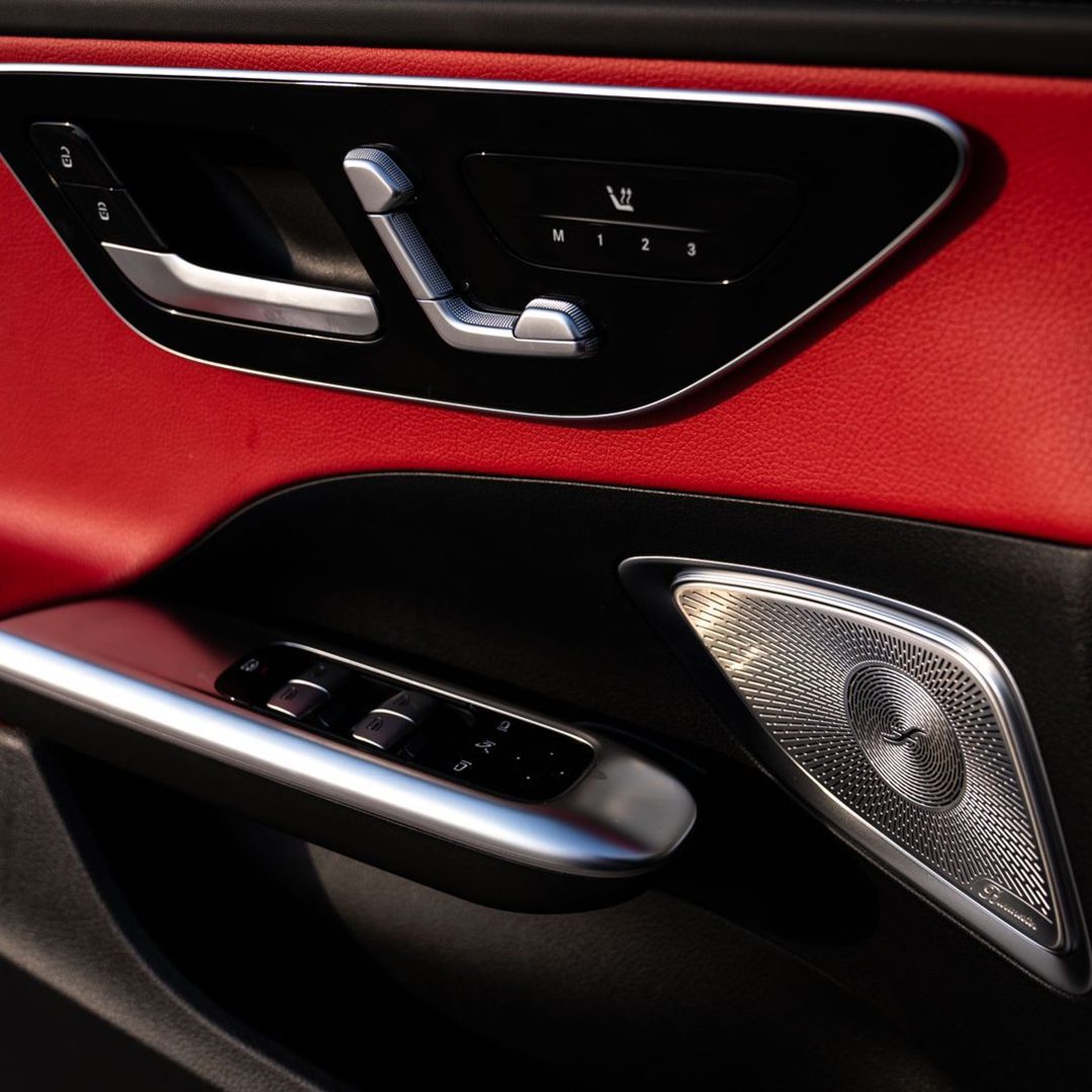 The 2024 Mercedes-Benz C200 is a 4-door sedan with a 1.5L engine and automatic transmission. It has a grey exterior and red interi…